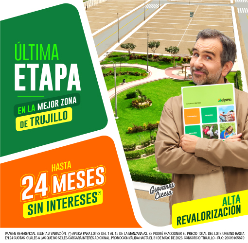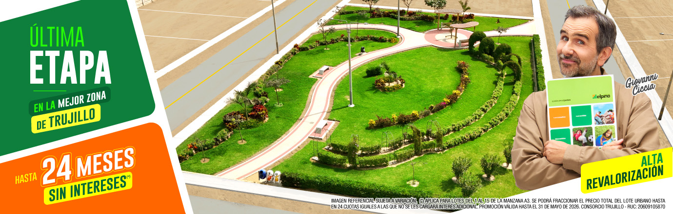 Imágenes referenciales sujetas a variación. (1) Cuota mensual estimada para crédito directo abonando el 40% del precio del inmueble como cuota inicial y el saldo hasta en 97 meses para pagar en lotes desde 120 m2, perteneciente al proyecto "NUEVO GOLF". TCEA $ 21%, TCEA S/ 26%. Tipo de cambio: 3.50. Hasta agotar el stock.